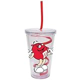 Here are some of the great features of M&M's Candy Insulated Acrylic No-Sweat Tumbler Red- Includes reusable spiral straw.