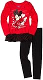 Disney , This cute Disney Minnie Mouse "Miss Fabulous" 2-piece toddler girls tunic top and leggings set will look darling on your little Miss. Tunic top features adorable ruching on the shoulders and ruffled bottom. Disney Minnie Mouse tunic top also features a glamorous image of Minnie with glittered and metallic graphics. Full length solid black leggings have an elastic waist for fit and comfort.Red/BlackMinnie Mouse top constructed from 60% cotton/40% polyester fabric and leggings 60% cotton/37% polyester/ 3% spandex ...